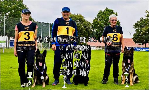 Vom 19. bis 22. September fand in Halle an der Saale die Bundessiegerprüfung statt. Mit bestem Wetter und mit toller Organisation war dies eine Veranstaltung, an die man trotz sehr anspruchsvoller Richtweise gerne zurück denkt.