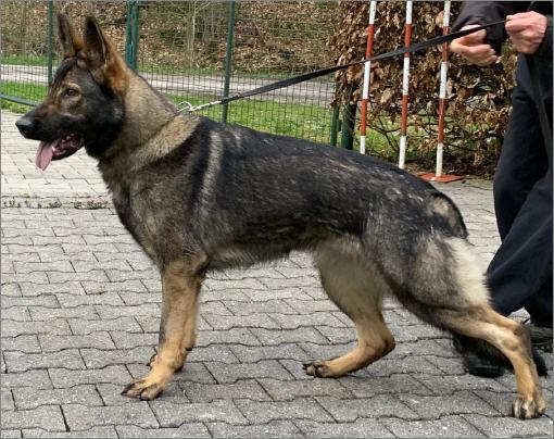 Groß, mittelkräftig, gut pigmentiert, gut geformter Kopf, etwas flacher Widerrist, gerader Rücken, kurze abschüssige Kruppe, Oberarm sollte länger sein und schräger liegen, Hinterhand ist sehr gut gewinkelt, etwas kurze Unterbrust, gerade Front, vorne und hinten gerade tretend, gute Gänge, sicheres Wesen, TSB ausgeprägt.